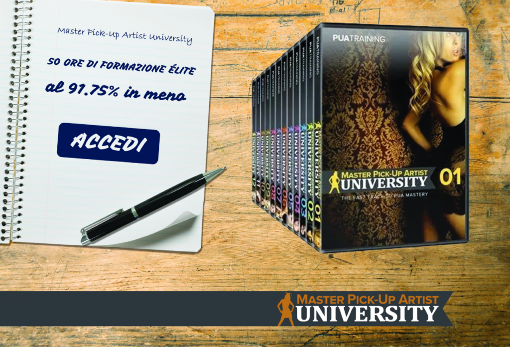 Normalmente disponibile SOLO per i nostri studenti Élite e per chi ha frequentato un corso dal vivo con noi, puoi avere accesso anche tu ora al Master Pick Up Artist University.